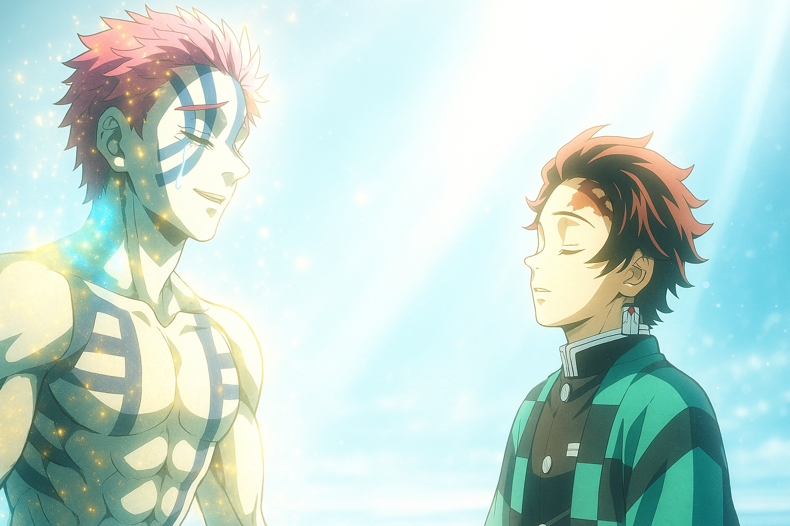 心理学的に言えば、これはフロイトが語る防衛機制の崩壊であり、ユングが説く“影(シャドウ)の統合”の瞬間でもある。猗窩座はずっと「強さ」という仮面で、自分の“弱さ”を隠して生きてきた。けれど、炭治郎という“光”と向き合う中で、ついにその仮面を脱ぎ捨てる。「強さとは、何も失わないことではなく、失ってもなお愛せること。」 その真理に気づいた瞬間、彼は“鬼”という存在を超えて、ただの人間へと戻っていった。